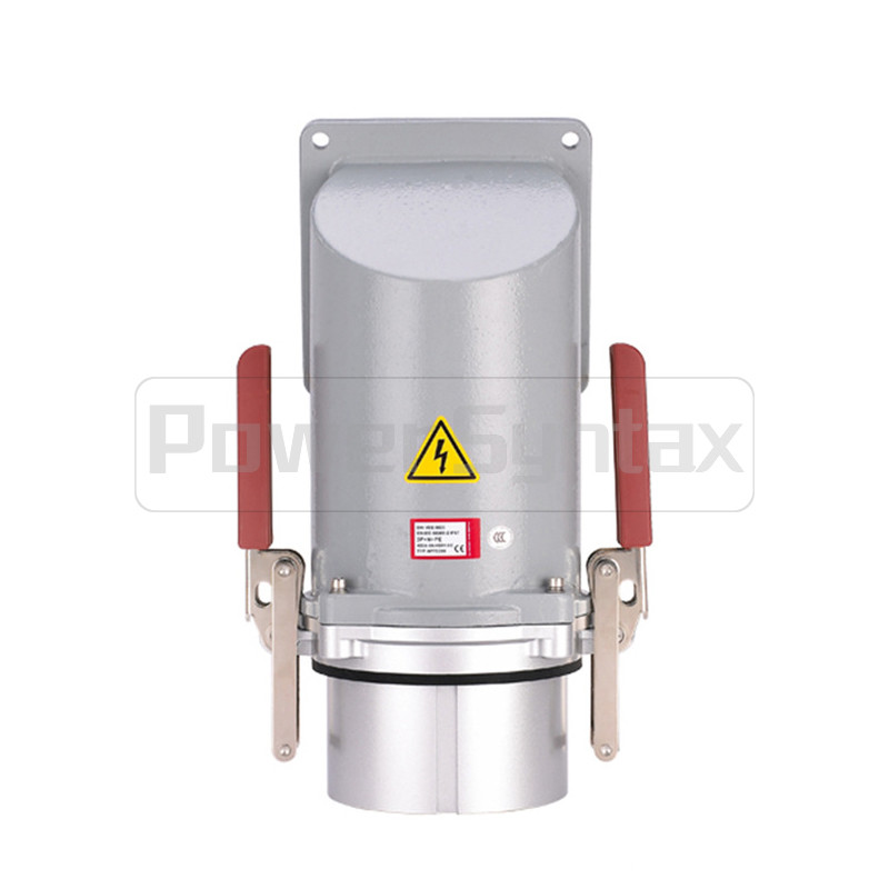 PowerSyntax 5P 400A IP67 415V Heavy Duty High Current Wall Mounted Angled Industrial Plug Dock Receptacle Bagian No. 75336