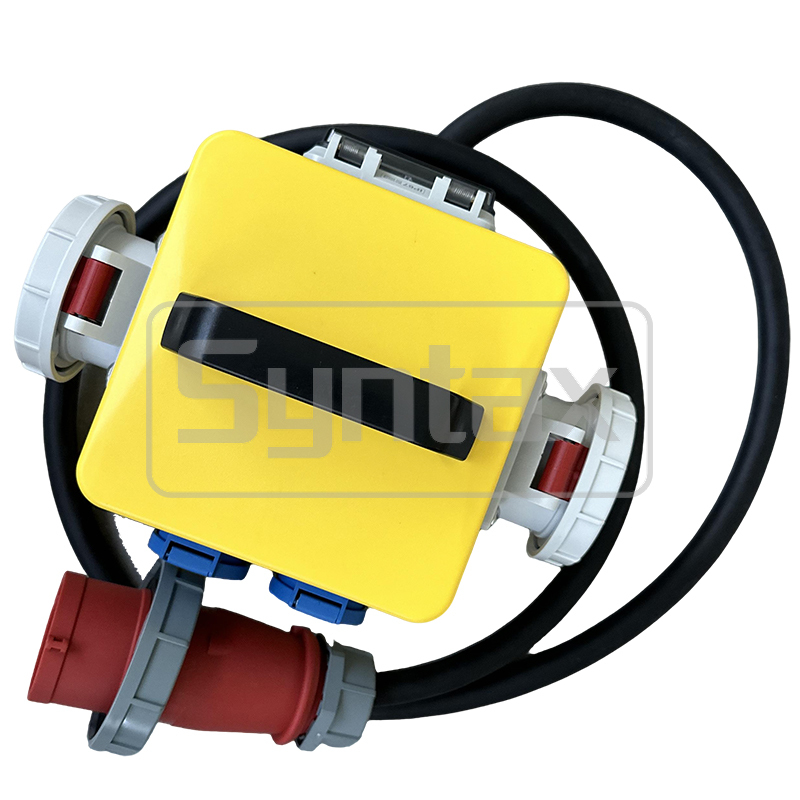 Kotak Distribusi Portabel Tahan Air Syntax MZ6 IP67 32A/5P Tiga Fase 400v Dengan Kabel Daya Bawaan 1.8m Luar Ruangan 20*20*21.5CM