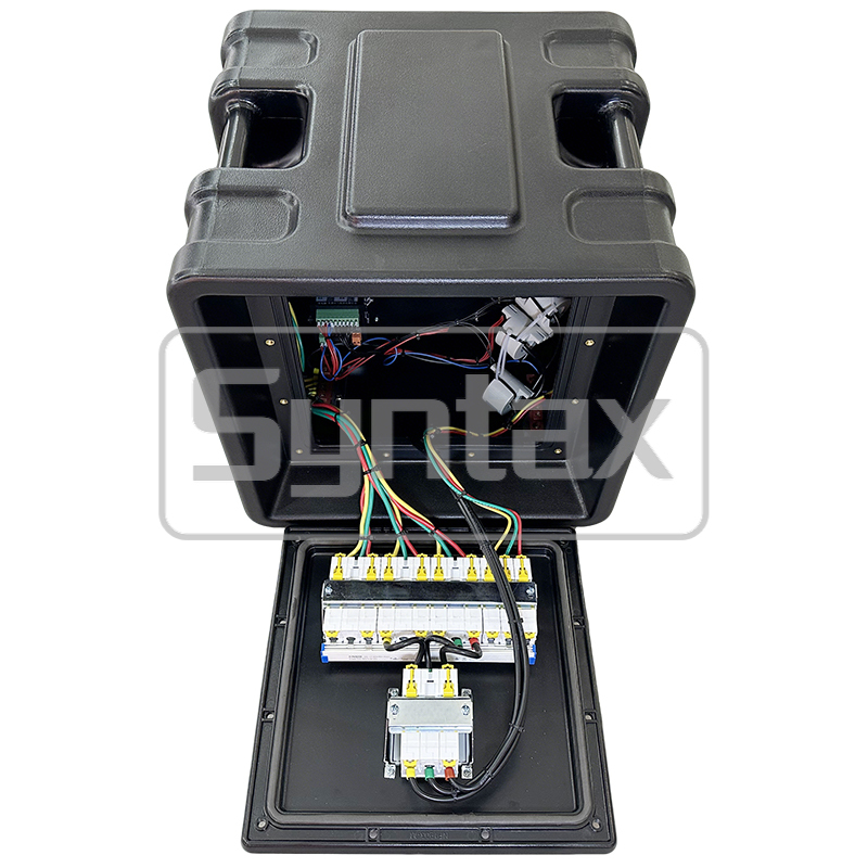 | Merek komponen | Kotak Distribusi oleh Syntax; Colokan & Soket Industri oleh Weipu; Pemutus oleh Schneider |