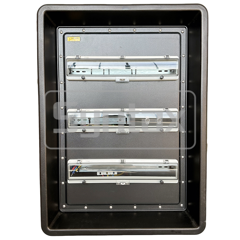 | Keluar 7-12 | 6×Soket Terpasang Panel 3P 32A 220V IP67, dilindungi oleh 6×1P+N 32A 30mA RCBO |
